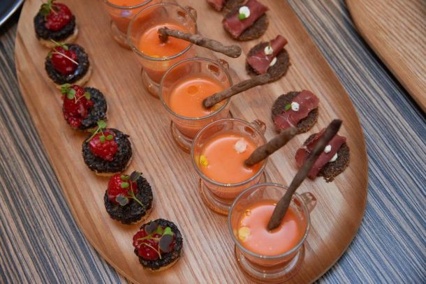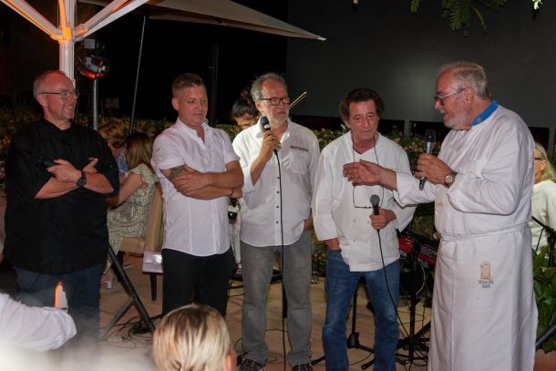 Drei Spitzenköche und ihr Lehrer haben einen Abend gemeinsam im Restaurant Adelfas gekocht. Das Ergebnis war ein Fünf-Gänge-Menü