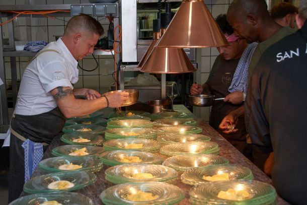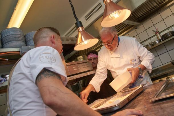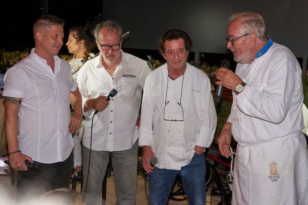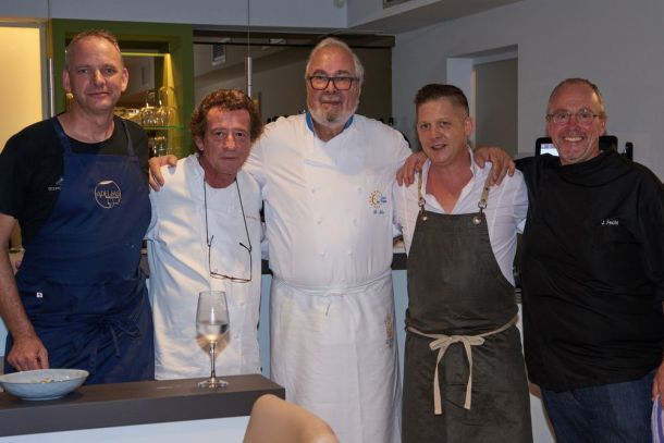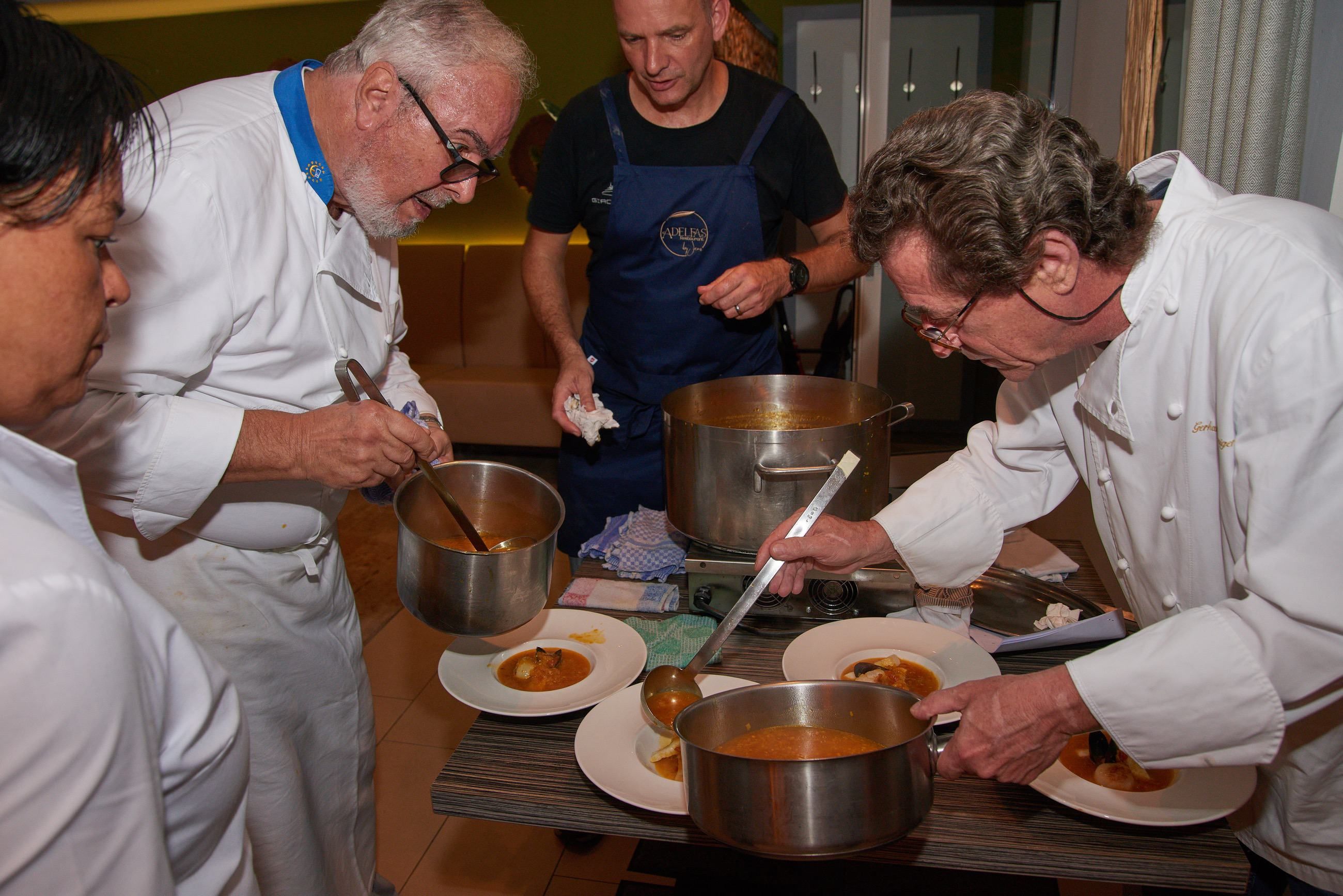 Drei Spitzenköche und ihr Lehrer haben einen Abend gemeinsam im Restaurant Adelfas gekocht. Das Ergebnis war ein Fünf-Gänge-Menü